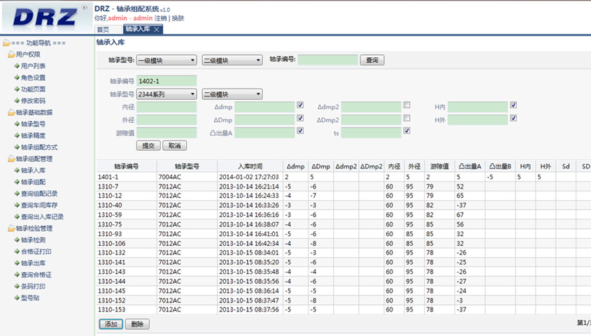 - 軸承基礎數據:管理軸承相關的基礎數據,包括軸承的型號、精度、組配方式等