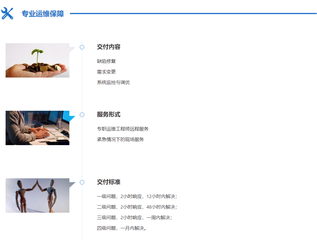 互聯(lián)網(wǎng)應(yīng)用研發(fā)、運(yùn)維一體化服務(wù),面向具有明確的信息系統(tǒng)建設(shè)需求的企業(yè),提供快速交付軟件產(chǎn)品服務(wù),并可根據(jù)企業(yè)需求進(jìn)行后期迭代式開發(fā)服務(wù)。