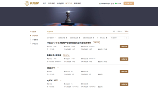 • 產(chǎn)品管理:管理產(chǎn)品基本信息、產(chǎn)品生命周期、產(chǎn)品凈值、查詢產(chǎn)品交易記錄、產(chǎn)品份額等信息。